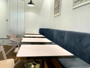 非常に明るいし窓も大きい。白い壁に椅子が落ち着いたグレーの色