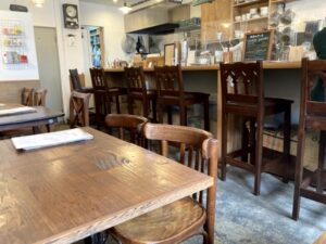 椅子座り心地普通、テーブルの広さ狭め、隣との間隔狭い