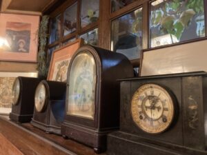 現役で活躍している古びた時計があちこちとあり、12時を知らせる音に味があり良い