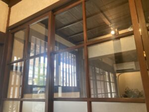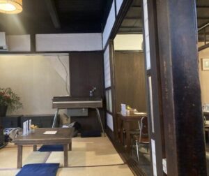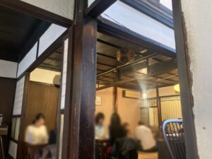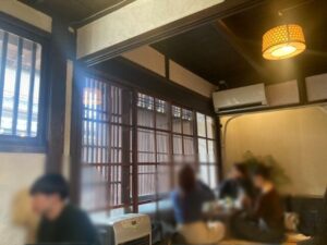 民家を改造した室内、座席が9割ですかね、畳の古さガラス扉