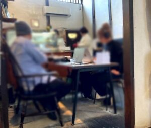 椅子座り心地悪い、テーブル狭い、隣との間隔普通